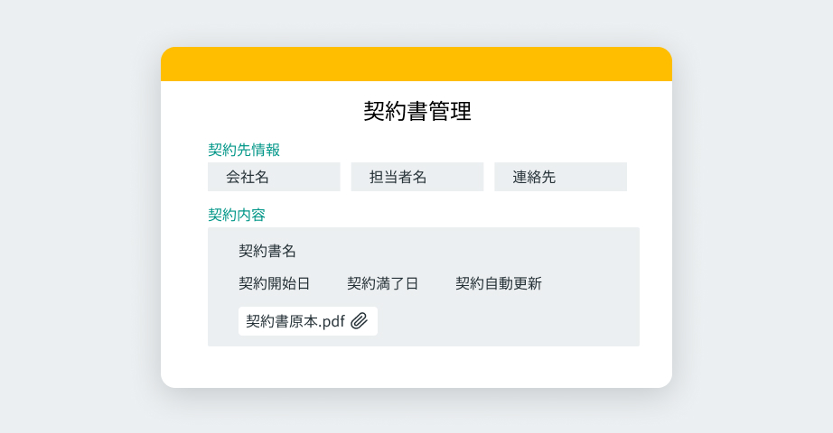 契約書の雛形の管理や修正履歴をkintoneで管理することができます。外部システムと連携させることで電子契約を締結することもできます。